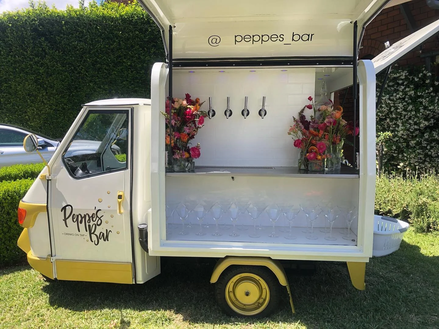 Peppe's Bar is a three wheeled Piaggio Ape from Italy (pronounced A-peh meaning, bee) that has been passionately converted into a mobile tap bar to serve Birra, Vino, Prosecco, Aperitivi, Cocktails, Espresso and Kombucha.